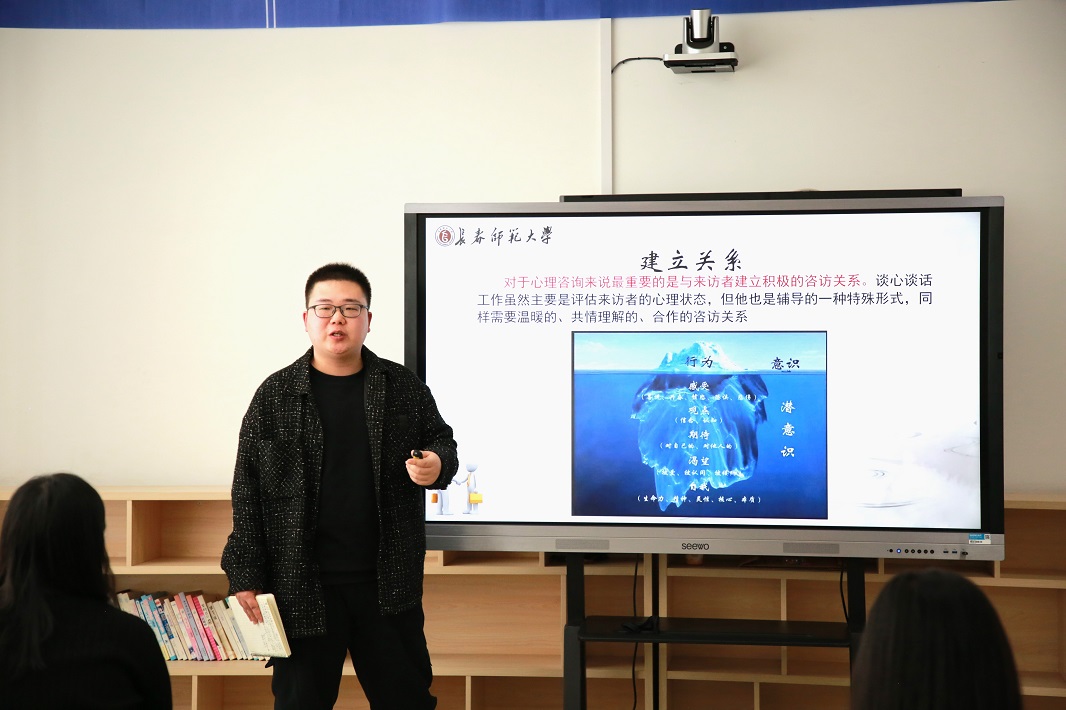 本期沙龙聚焦大学生心理健康教育专题,由计算机科学与技术学院辅导员徐铭晗、教育学院辅导员李长健、经济管理学院辅导员许卓石、美术学院辅导员杨一明依次分享在全省高校辅导员心理健康教育基本知识和技能培训班上的学习收获。