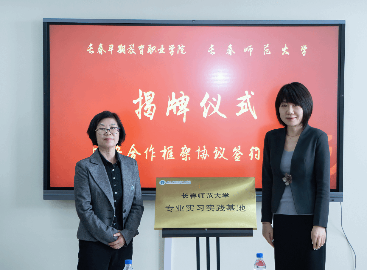 我校教育学院院长孙中华和长春早期教育职业学院副院长刘韵凤为专业实习实践基地揭牌。