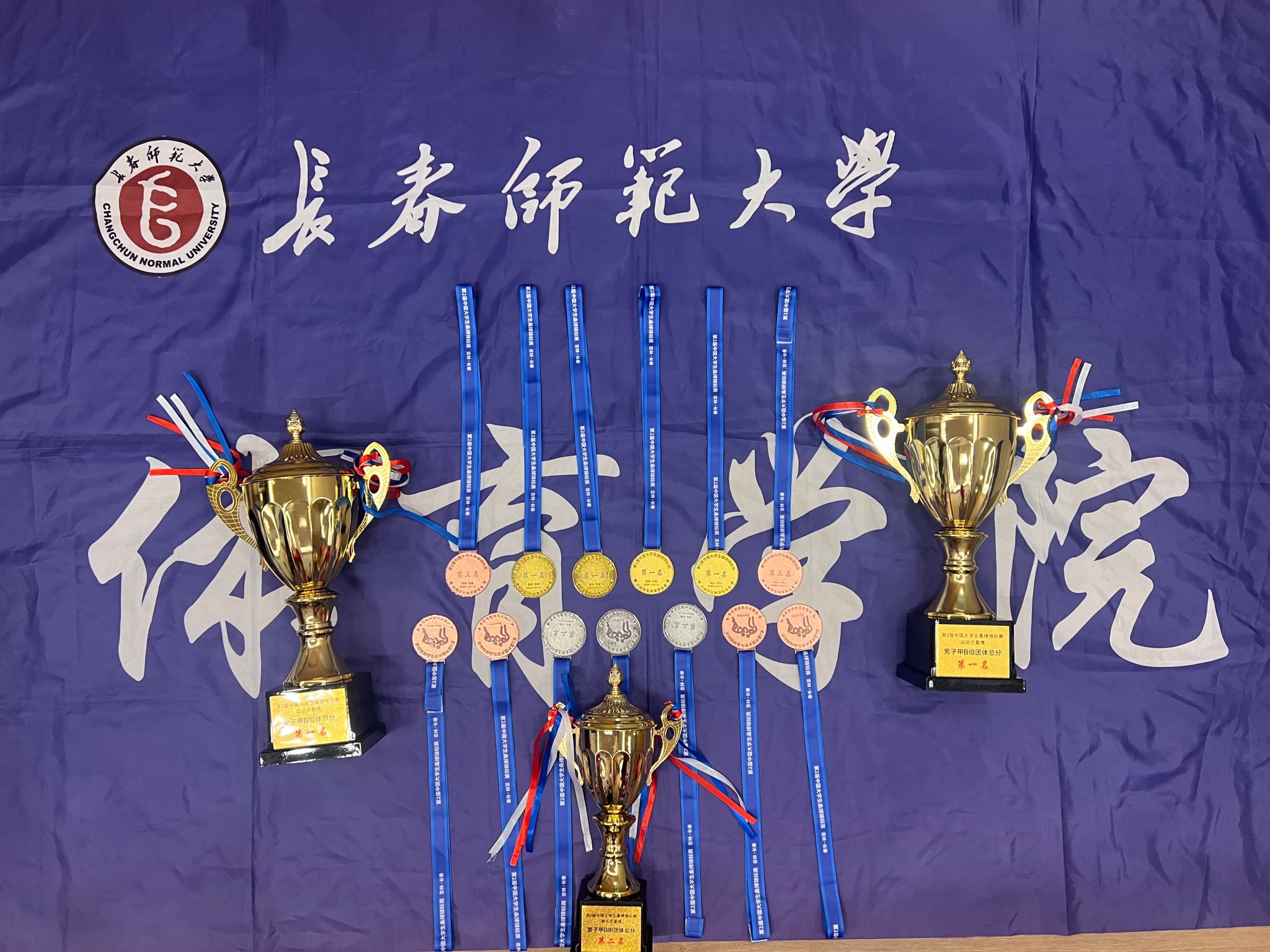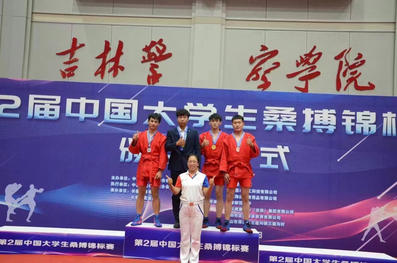 7月10日至15日,在由中国学生体育联合会主办,长春市体育局、长春市柔道协会承办的第二届中国大学生桑搏锦标赛中,我校桑搏代表队在体育学院院长张镜宇和教练员段东平、刘野带领下,曾渊淏、吉洺石、马占海、闫思淇等13名同学斩获4枚金牌、3枚银牌、6枚铜牌,同时获得运动式甲B男子、女子团体总分第一名,格斗式桑搏甲B男子团体总分第二名,段东平、刘野荣获优秀教练员称号。