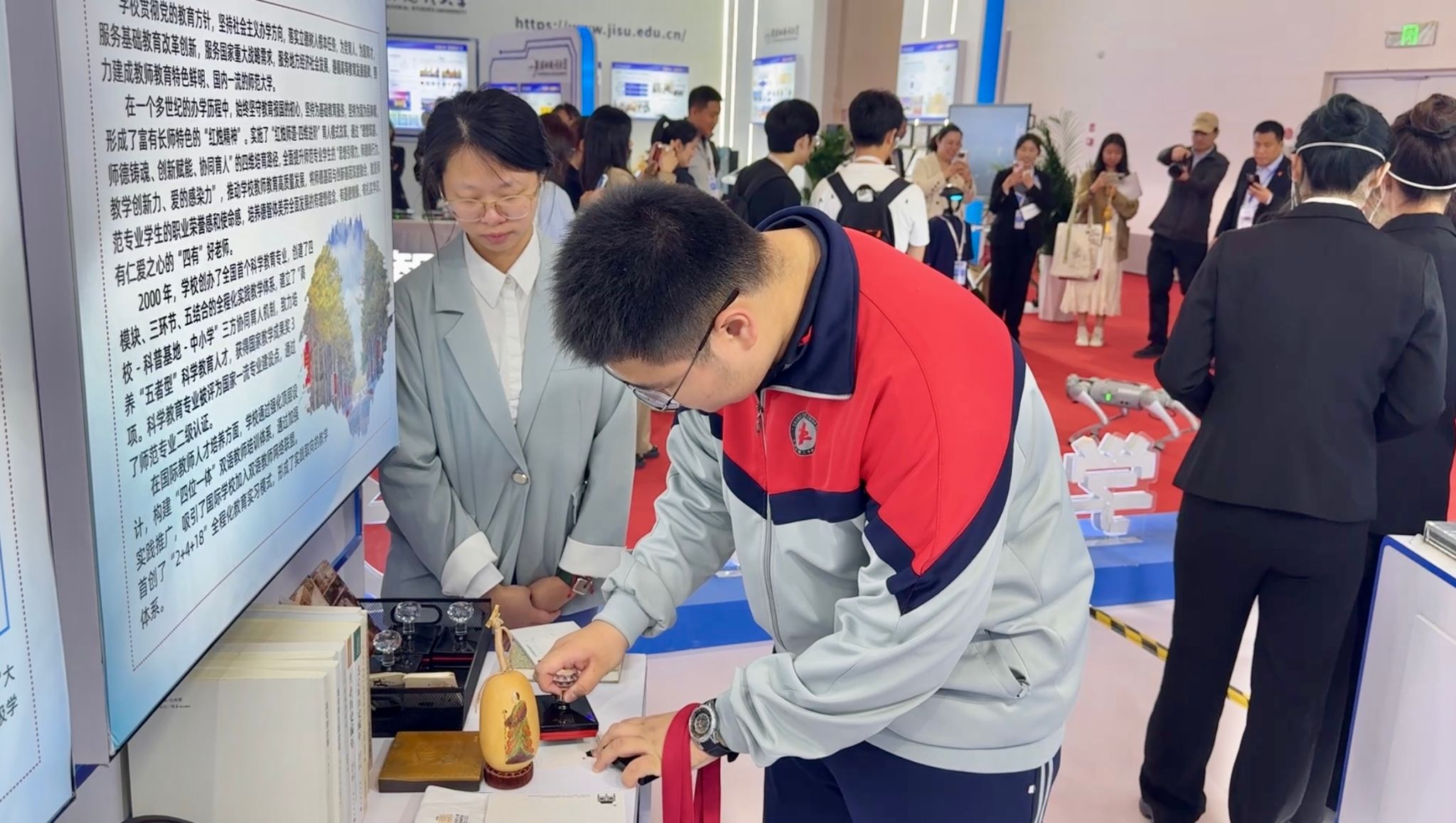 为生动呈现学校的学科布局、科研成果和育人硕果,学校特别打造了108平方米的展示区,通过LED大屏、现场讲解和实物展示,力求将学校的发展优势呈现在每一位观展者眼前。